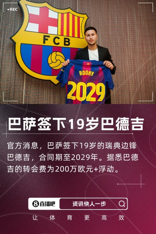 足球投注技巧与策略 07月14日讯 官方消息,巴塞罗那签下19岁瑞典翼锋巴德吉,双方签约至2029年。据此前罗马诺报道,交易为200万欧固定费用+浮动+二转费用 ...