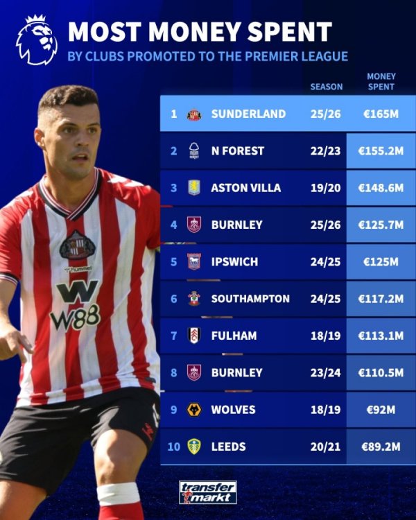 法甲足球新闻 08月18日讯 英超第1轮,“黑猫”桑德兰3-0击败西汉姆,取得回归英超首胜。德转官方晒出数据,桑德兰今夏花费1.65亿欧,成为历史上花费最多的英 ...