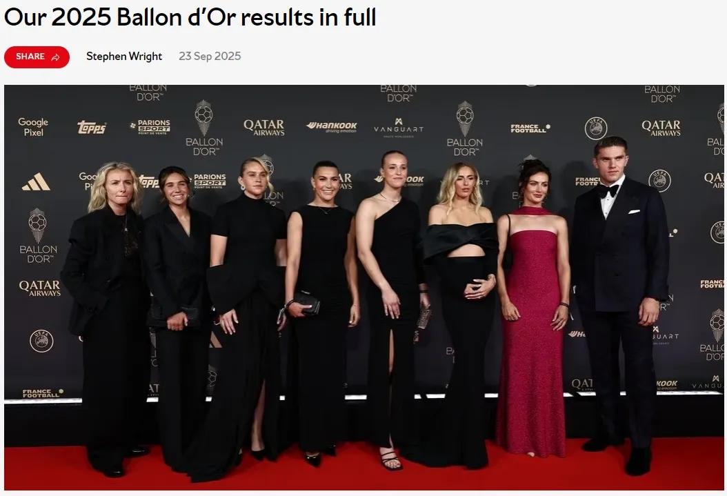 男子科帕奖评选中,斯凯利并列第九位。雅辛奖评选中,阿森纳男女足守门员拉亚和范多姆塞拉分别跻身前十位。