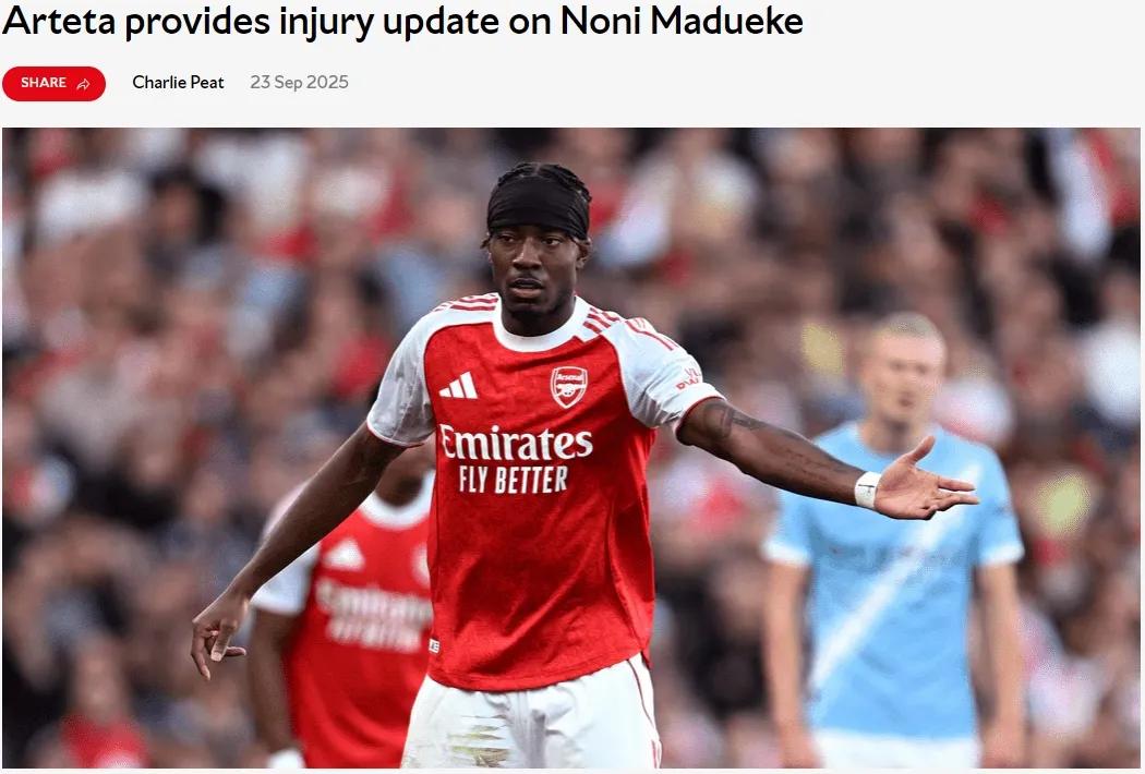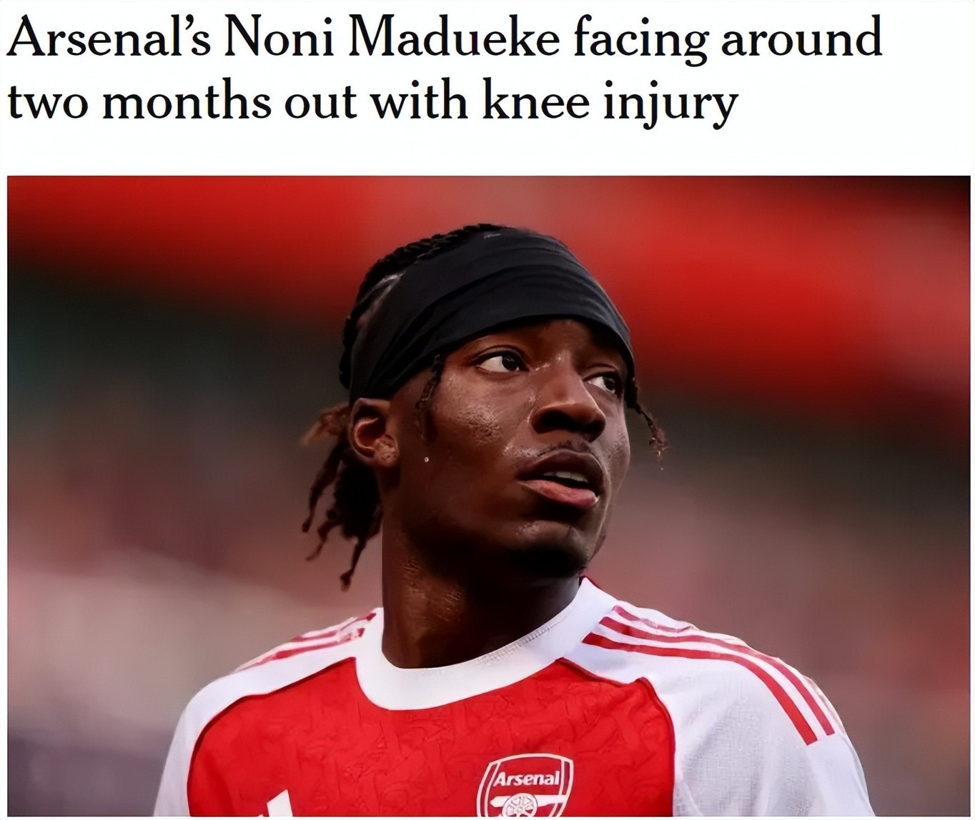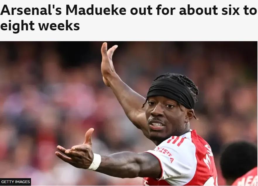 BBC记者SM发文,阿森纳预计马杜埃凯将因为膝伤缺阵6-8周,但万幸这名翼锋被认为并没有伤及膝盖十字韧带。