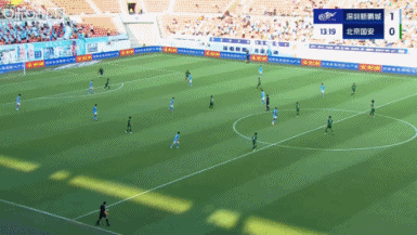 加时补赛3分钟。上半场赛事 结束,深圳新鹏城2-0北京国安。
