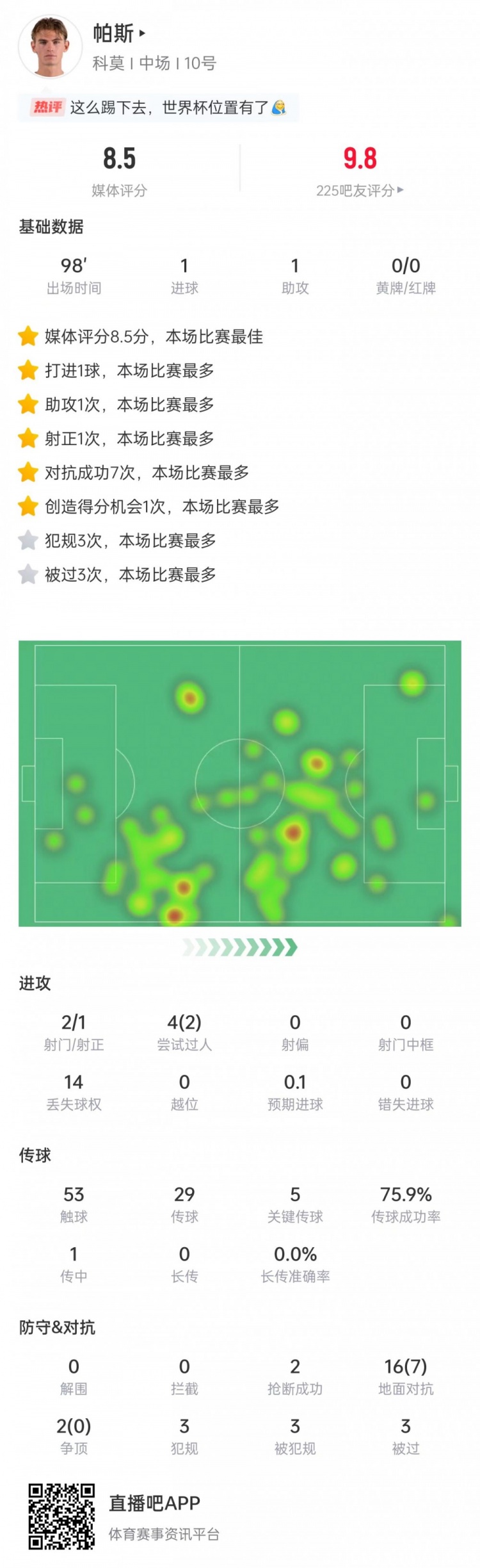 球队真核!本赛季意甲科莫共打进9球,其中帕斯直接加入 8球