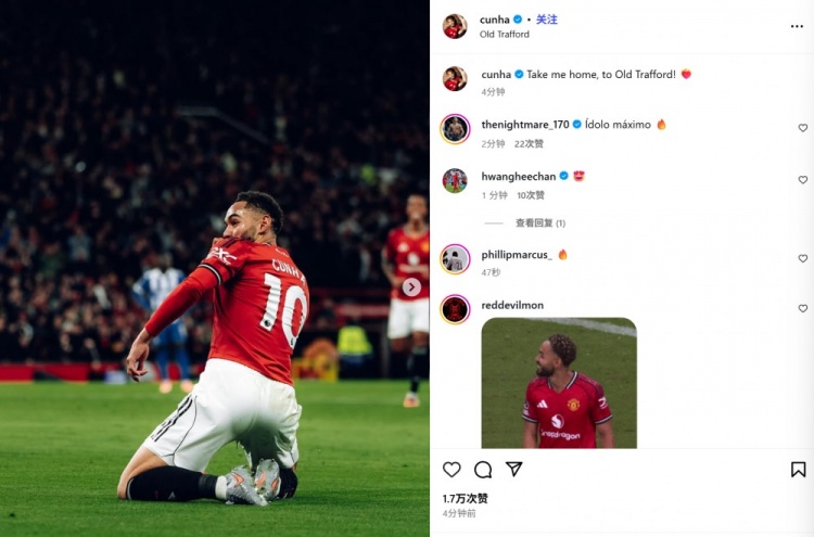 10月26日讯 曼联在本轮英超焦点战4-2力克布莱顿,库尼亚为球队首开记录 。