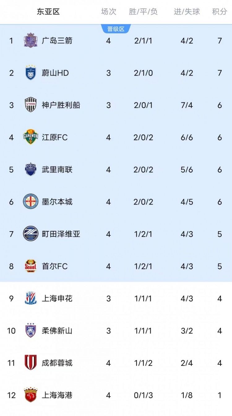 而如果申花今晚不敌对手的话,那么中超球队将创下一尴尬记录 :三支参赛的中超球队包揽亚冠精英职业联赛 积分榜倒数第一、倒数第二和倒数第三。