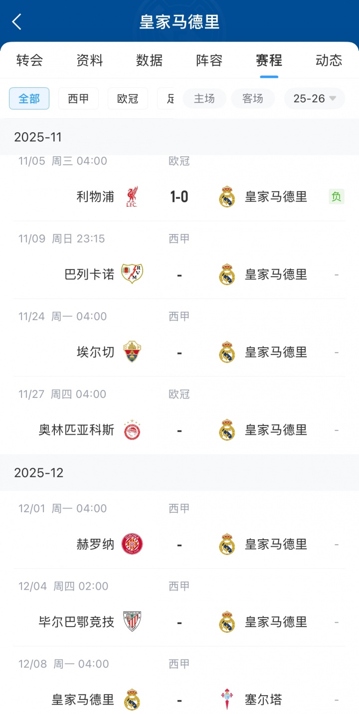 直到12月8日的西甲对阵塞尔塔在哪里看足球直播软件好,皇马才会回到伯纳乌射门。