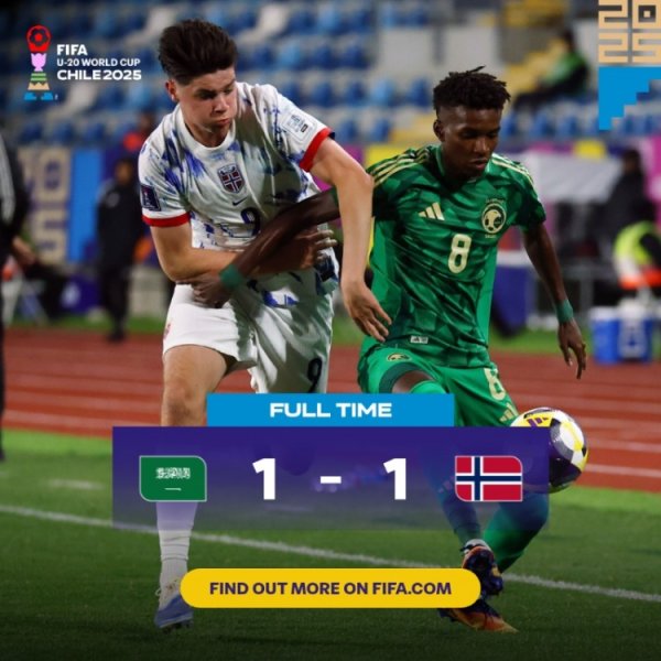 在哪里看足球直播回顾 10月6日讯 世青赛(U20世界杯赛 )小组赛第三轮赛事 ,沙特1-1战平挪威。 此役上半场两队均无建树,下半场富格莱斯塔为挪威先拔头筹, ...