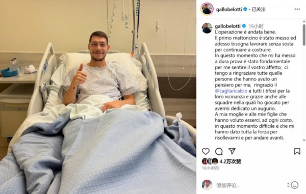 亚洲博彩安全平台 10月2日讯 贝洛蒂因十字韧带断裂于昨日接受了膝盖手术。 贝洛蒂在社交媒体上发布了术后微笑的照片并配文:“手术进展顺利。第一块砖已经铺好了,现 ...
