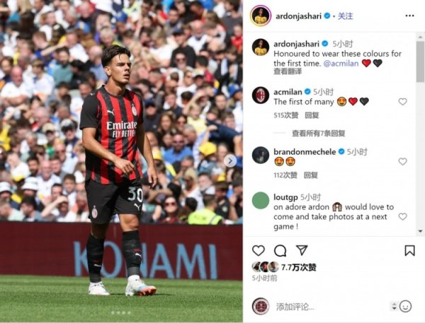 足球直播在哪个平台可以看 8月10日讯 在米兰对阵利兹联的友情 赛中,亚沙里杆位出战,上演米兰首秀,最终两队1-1握手言和。 亚沙里更新社媒动态足球直播在哪个平 ...