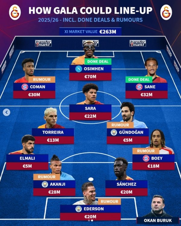 免费足球直播平台推荐 7月31日讯 加拉塔萨雷签下奥斯梅恩只待正式官宣,《转会市场》也根据近期动向预测了加拉塔萨雷可能在新赛季排出的主力阵形 ,拜仁曼城各3将。 ...