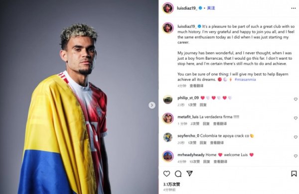 体育赛事直播实时比分 7月31日讯 拜仁已经官宣从利物浦签下哥伦比亚翼锋迪亚斯,后者也通过社媒晒出签约照并发文纪念: “能够加入如此伟大、拥有悠久历史的俱乐部, ...