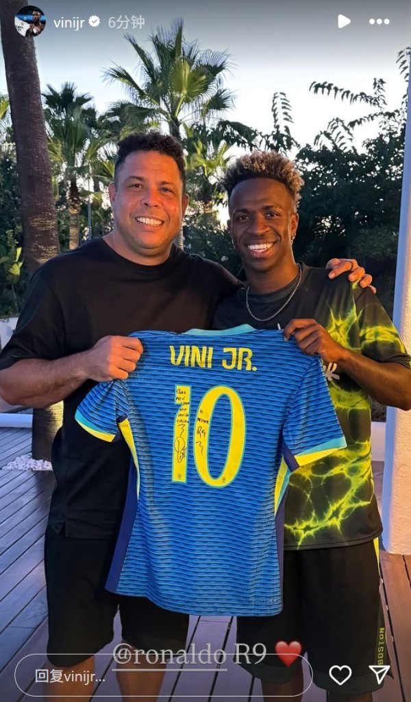 今晚国足直播免费观看 7月31日讯 皇马翼锋维尼修斯当前仍在度假,他今日通过社媒晒出同巴西传奇巨星罗纳尔多的合影。 作为两代巴西球员中的领军人物,两人也都显得非 ...