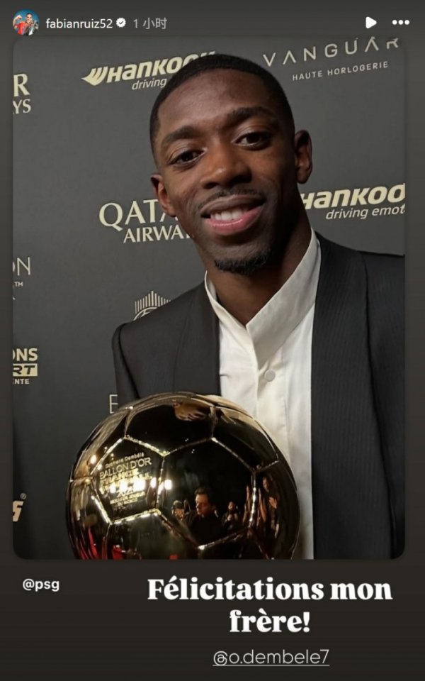 亚洲体育博彩亚洲体育博彩平台推荐 9月23日讯 在不久前结束的2025年金球奖颁奖典礼上,登贝莱荣膺金球奖。 一同入围金球奖候选的法比安也在社媒晒照祝贺队友登贝 ...