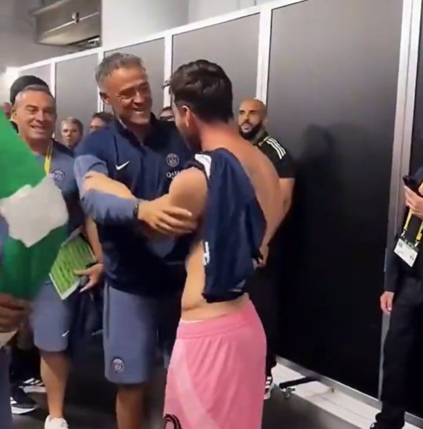 06月30日讯 世俱杯,迈阿密国际0-4不敌巴黎。 赛后在球员通道,梅西与恩里克、多纳鲁马、金彭贝等人拥抱攀谈。 苏超直播在线观看 ...
